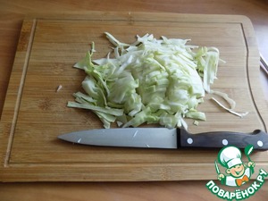 Через 40 минут варки фасоли под крышкой и на маленьком огне выложила в кастрюлю капусту порезанную.