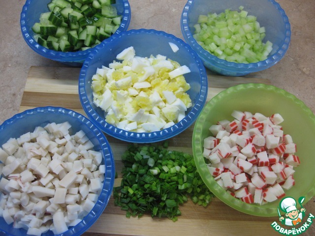 Рецепт «Салат с кальмарами "Освежающий"»: