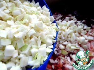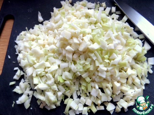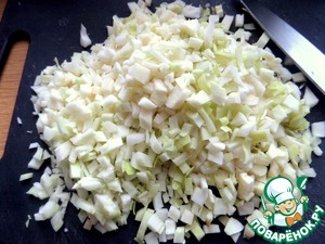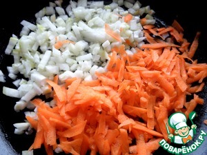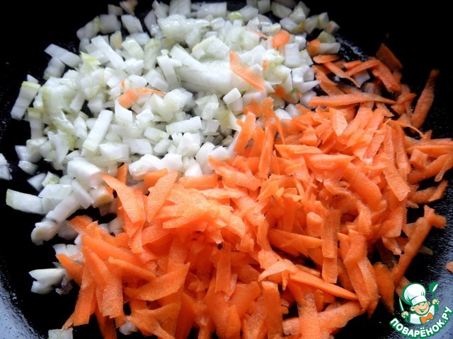 В это время подготовим овощи. Нарезать мелко лук, морковь натереть.