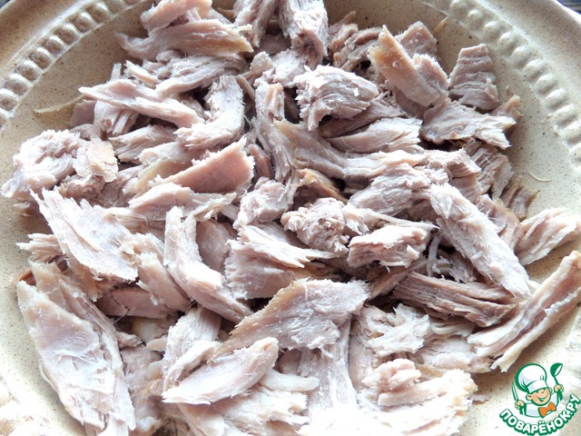 Распотрошить его на волокна. Можно добавлять его прямо в тарелку, кто так любит.