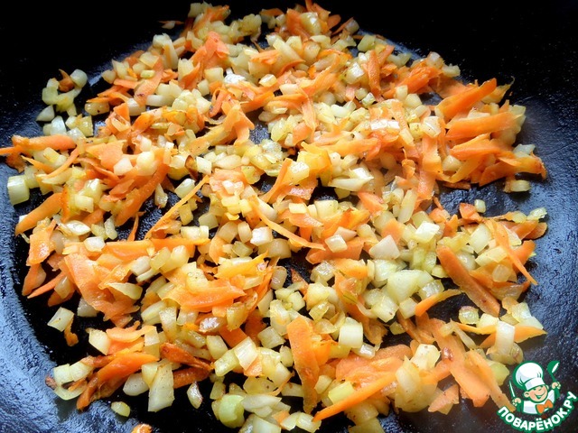 Обжарить, помешивая, чтобы избежать подгорелостей.