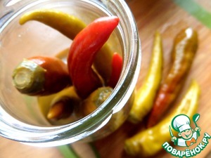 А вот откуда возьмём остроту! Открываю баночку маринованный зелёных перчиков, беру один.