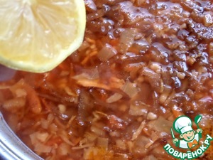В конце добавить чеснок и выжать лимонный сок-ложку.