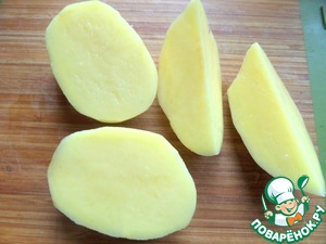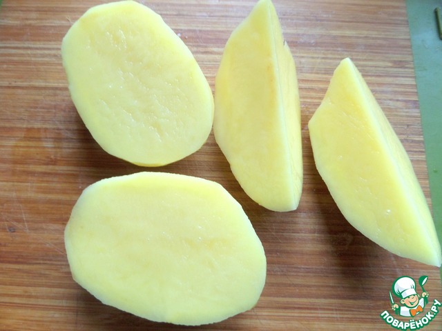 Картофелины поделить пополам и бросить в бульон. Позже вытащить и размять вилкой.