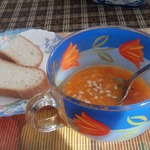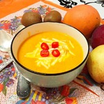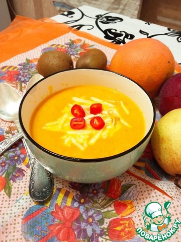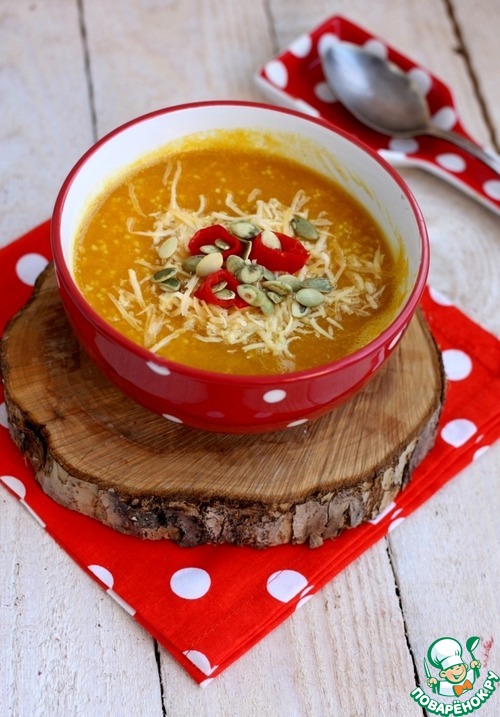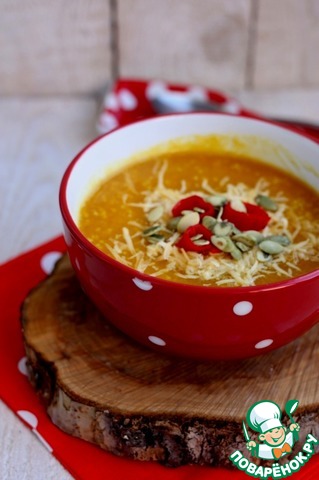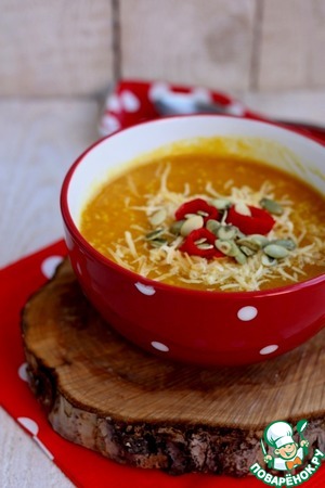 Как только у нас вскрывается тыква, в нашем рационе обязательно сразу появляется суп-пюре. И на днях у взрослых этот суп был с огоньком.