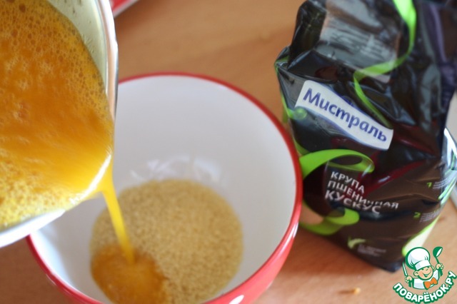 Залить супом и накрыть крышкой(тарелкой) на 5 минут. Кус-кусу этого достаточно для приготовления.