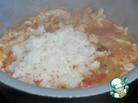 Кладём рис к морепродуктам в сотейник.