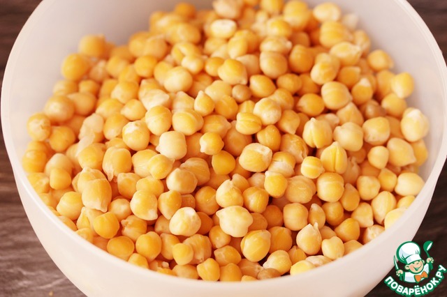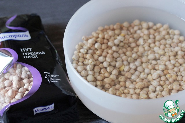 Замочить нут с щепоткой соды (на ночь), затем промыть его, залить свежей водой и отварить до готовности.
