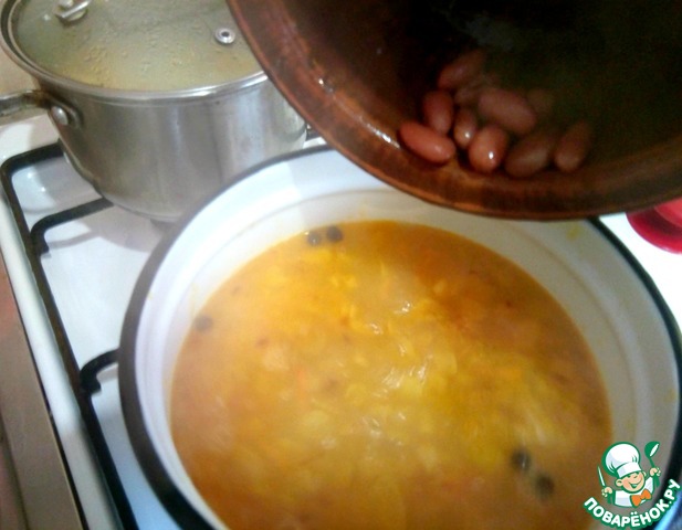 Добавляем в кастрюлю фасоль, доводим до кипения.