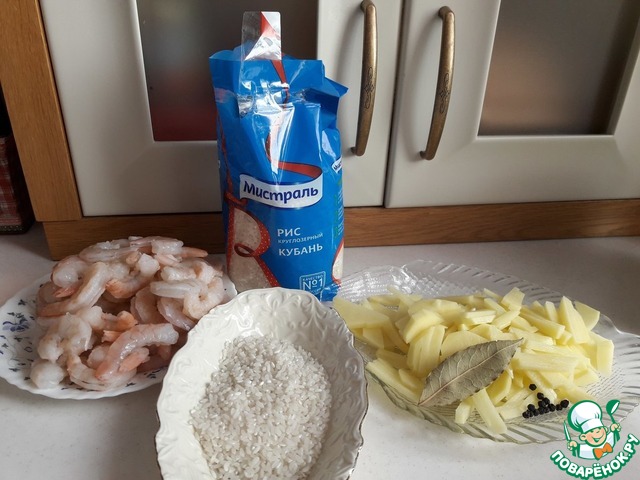 Ингредиенты для «Нежнейший сливочный суп с креветками»: