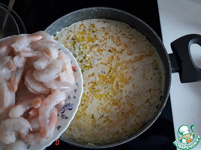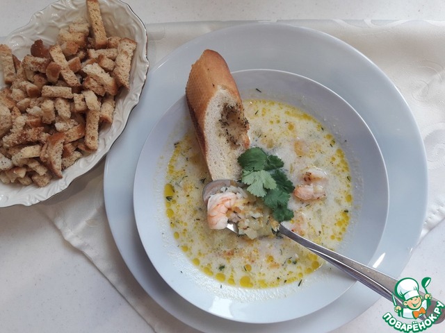 Рецепт «Нежнейший сливочный суп с креветками»: