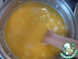 Отправляем в бульон картофель и зажарку с рисом. Варим до готовности.