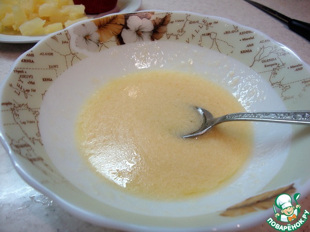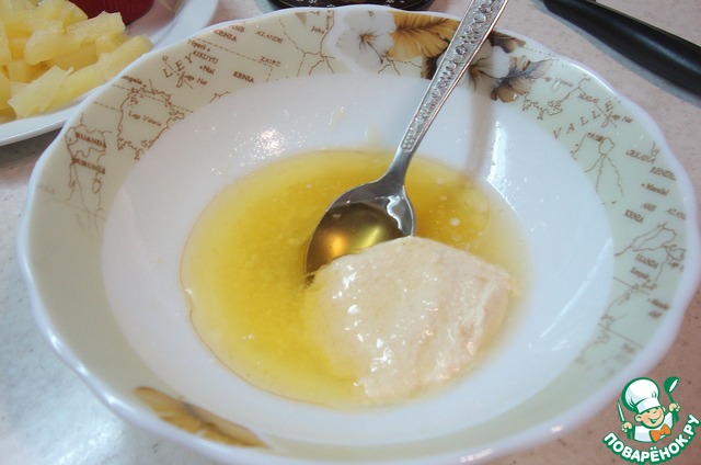 - Ананас (консервированный- у меня осталось такое количество) — 120 г