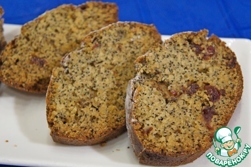 Затем добавить пшеничную муку с содой и влить масло. Хорошо перемешать, добавить ягоды. Я взяла вяленую клюкву и не пожалела. Она дала приятную кислинку, а изюм был бы сладкий.