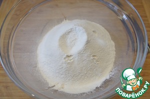 Смешать соль, разрыхлитель и муку.