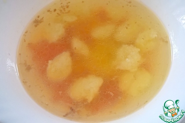 • За 5 минут до завершения варки супа, положить в него клёцки