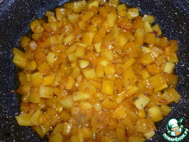 Жарим тыкву, помешивая, до приятного золотистого цвета.