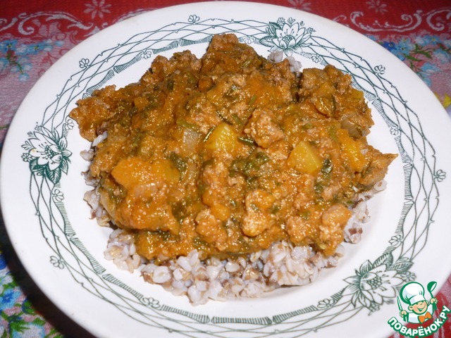 Рецепт «Подливка из тыквы и куриного фарша»: