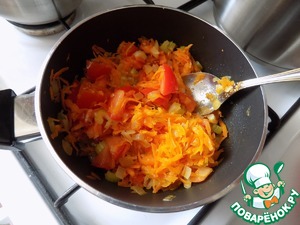 Далее добавила помидор, порезанный кубиком. Ещё потомила 5 минут до его мягкости.
