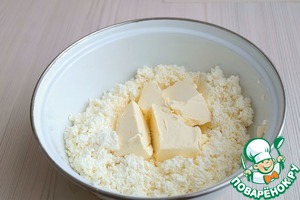 В творожную массу добавить размягченное сливочное масло (150 гр.)