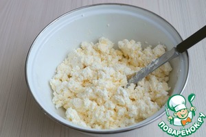 Творог (450 гр.) протереть через металлическое сито. Это нужно сделать обязательно, что бы творог имел однородную нежную структуру.