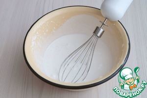 В отдельной миске взбить 2 яичных белка, добавить 1 стакан сахара. Смесь слегка взбить.