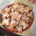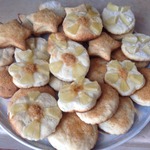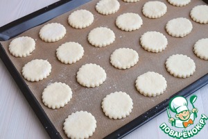 Хочу обратить внимание, что при разделке теста поверхность стола следует обильно подпылить мукой, во избежание прилипания теста к столешнице. Поверхность раскатанного пласта так же подпылить мукой. Толщина раскатанного пласта теста 0,7-10 мм. Вырубками вырезать печенье.