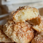 Добавить белково-сахарную смесь в миску с творожно-масляной смесью. Далее добавить мучную смесь. Замесить тесто. Тесто по консистенции будет мягким и слегка липким.