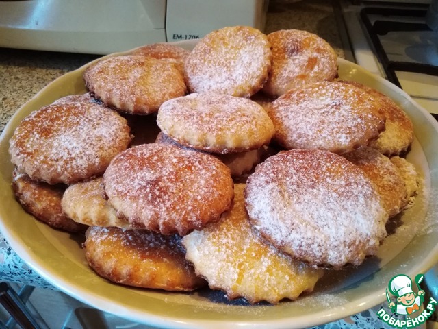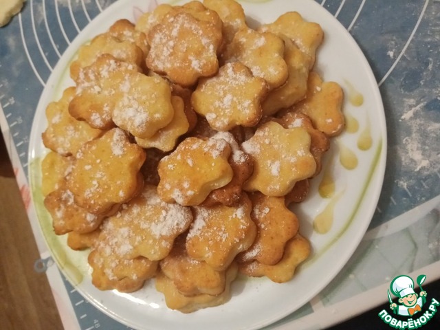 Готовое остывшее печенье посыпать сахарной пудрой.