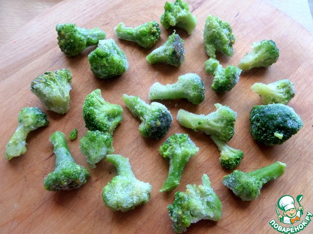 От брокколи отделить мелкие кусочки или взять замороженную.
