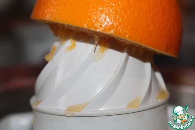 Пока мясо отдыхает, мы применим технику, которая называется дегласирование. На сковороду выливаем апельсиновый сок и немного белого вина. Доводим до кипения и немного увариваем, отскабливая при этом всякие пригоревшие частички со сковороды.