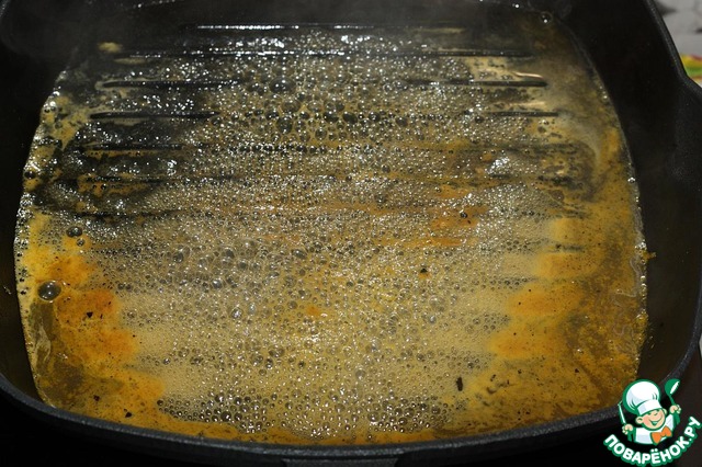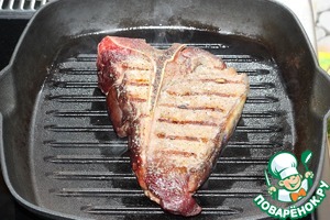 Стейк зажариваем на сковороде-гриль до нужной степени прожарки.