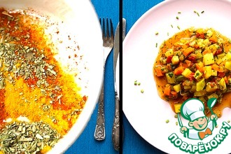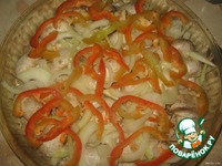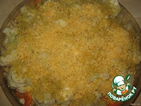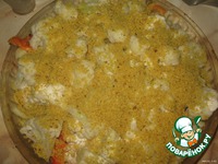 Делала с зеленым болгарским перцем, предварительно его с луком обжарила немного. Очень вкусно. Только вот почему то капуста цветная потемнела. Обычно белая всегда а тут..., наверное от овощей или сухарей