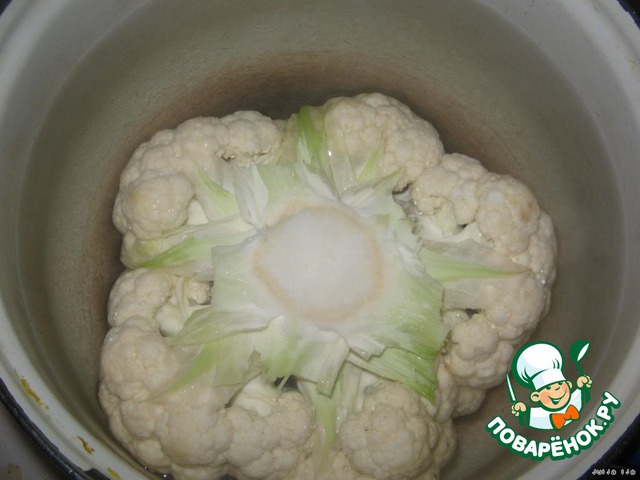 Цветную капусту отварить до полу готовности, в слегка подсоленной и по вкусу подслащенной воде.
