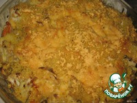Описание:Любимейшая цветная капуста, с любимейшими шампиньончиками, с добавлением сочных перчика и лука, запечeнная в духовке под сырной корочкой с сухариками. Вкусно!!!