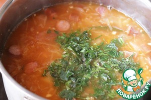 У меня нет красной фасоли, поэтому решила взять консервированную красную фасоль - одну баночку. На вкусе не отразилось, но в следующий раз положу две банки, а то фасоли мало получилось на кастрюлю в 2,5 литра. Еще посоветую брать колбаски поострее, у меня были довольно пресные, хотя и копченые, с умеренно острыми будет лучше.