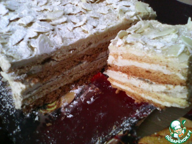 Позволю себе еще совет (выбор за Вами): попробуйте смазать коржи шоколадной глазурью, как в Итальянском ореховом торте, чтобы коржи остались хрустящими подольше. Ну, это на МОЙ вкус.