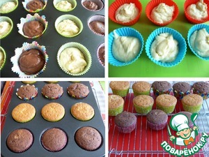 Если будите делать часть капкейков с какао-порошком, следует отложить часть теста в другую миску. -