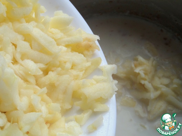 Если яблоко не жёсткое, можно перемешать и сразу выключить. Кислое и твёрдое яблоко проварить немного.
