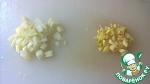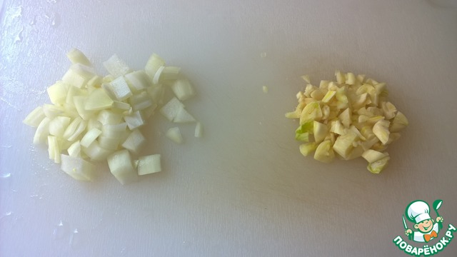 Репчатый лук и чеснок нарезаем достаточно крупно