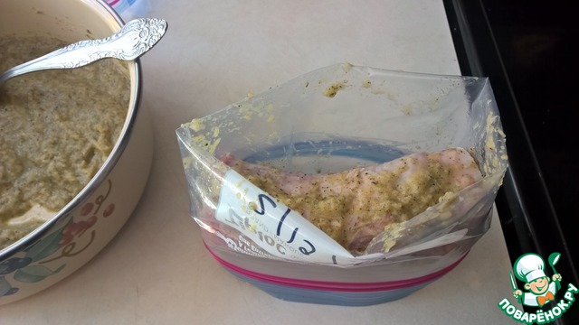 Обмакиваем куски вырезки в маринад и кладем в пакеты.