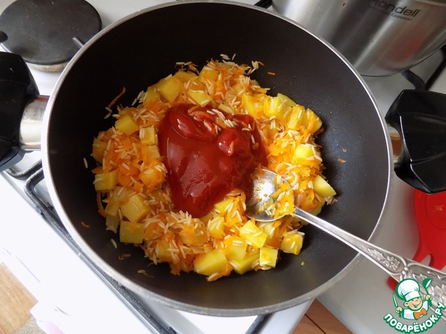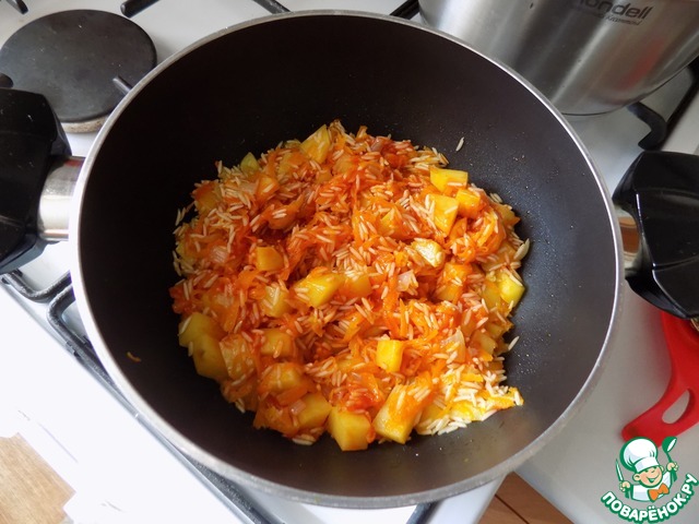 Томим овощи с рисом минут 10-12 на маленьком огне и под крышкой.