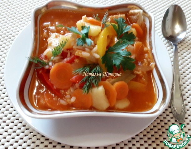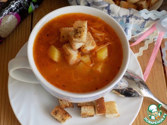 Густой и сытный суп в дни Поста с картофелем, рисом и овощами с томатной пастой. Пикантный, благодаря корице и кориандру. Вкусный и лёгкий, и, конечно же, полезный! В дополнение к супу, по желанию, можно подать белые сухарики из батона с кориандром и базиликом.