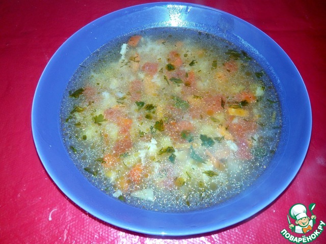 Чесночный суп с рисом и овощами