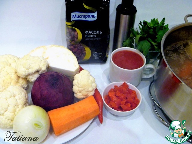 Для нас - это вариация борща ....., я не люблю картошку в борще( прекрасно компенсирует фасоль), другие не любят вареную ( белокачанную) капусту, а вот цветная всем
