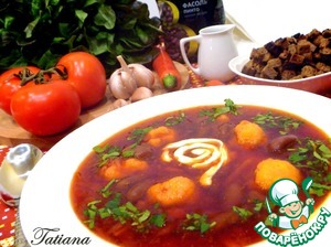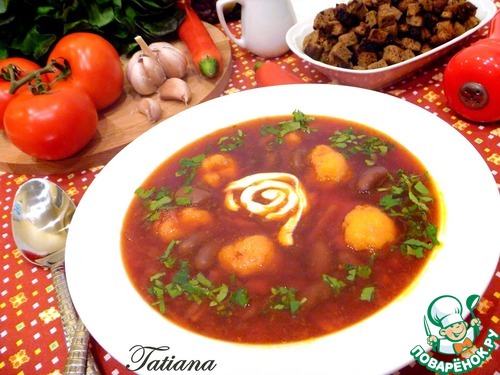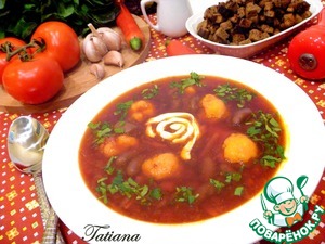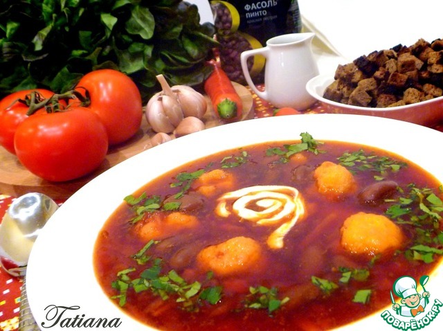 Рецепт «Суп свекольный с фасолью и гренками»:
