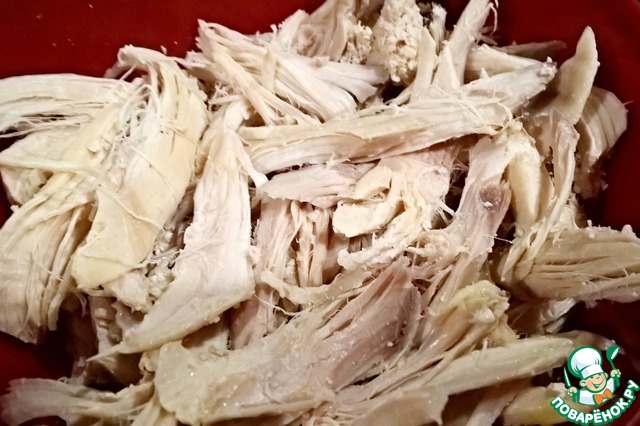 Мясо "разломать" на маленькие кусочки и вернуть в суп -