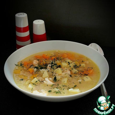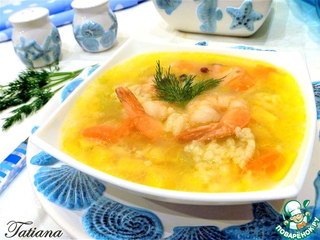 Вкусный и ароматный рыбный суп разнообразит меню первых блюд. Добавка в виде риса-сделает рыбный суп более сытным, ну а креветки-даже праздничный вариантом.