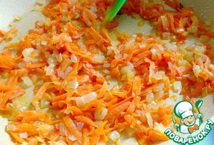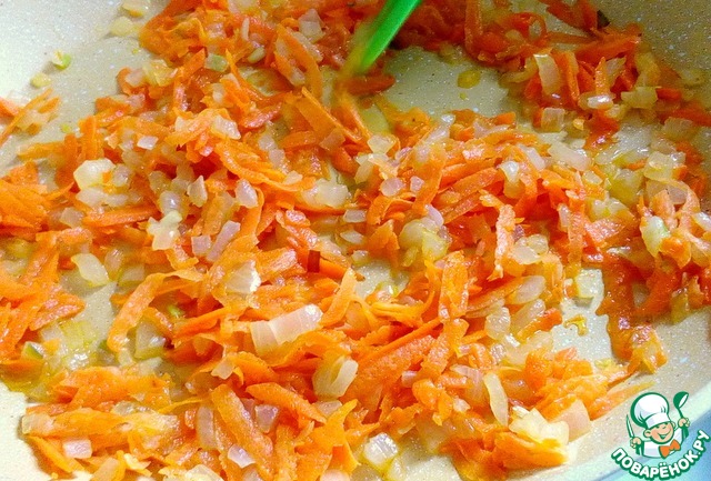 Одновременно, разогреть сковороду с маслом и обжарить лук с морковью.