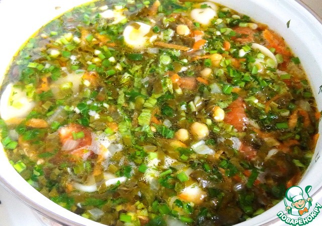 Рецепт «Щавелевый суп с нутом и пельменями»: